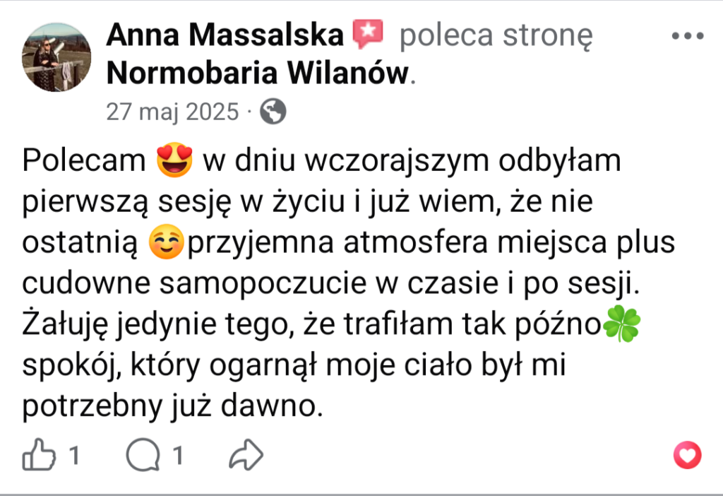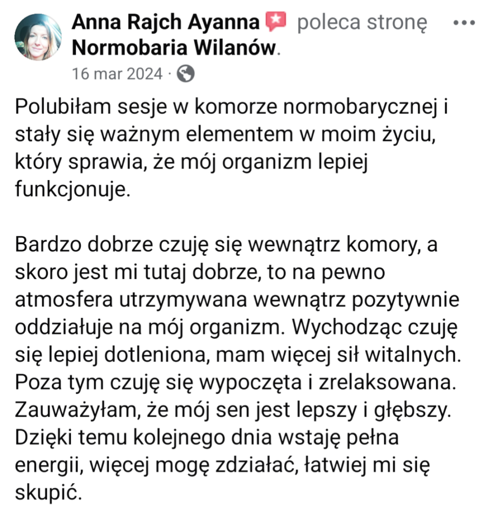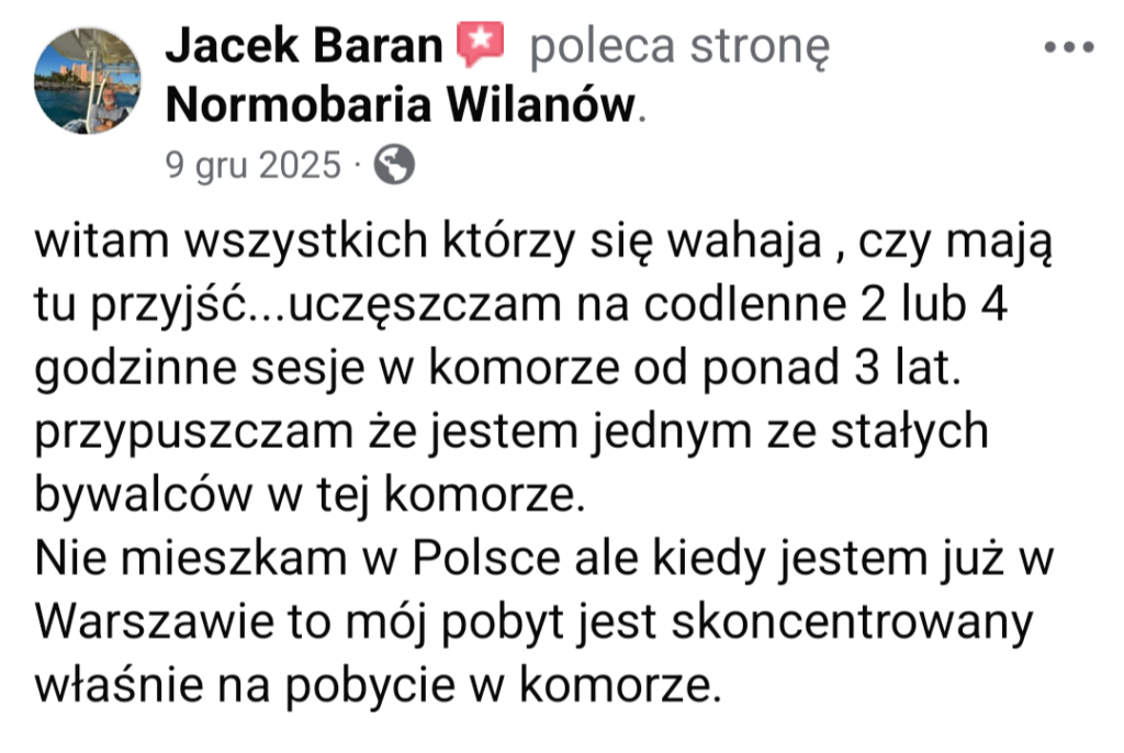 Umów się na pierwszą sesję w Normobarii Wilanów w cenie 50 zł